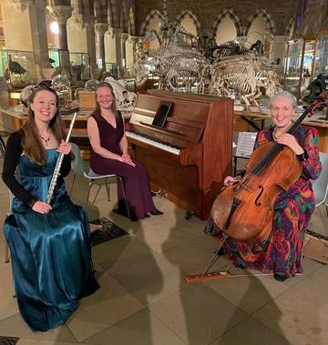 Flexicare is thrilled to welcome back the Ivel Trio for our captivating ‘Night in the Museum’ classical concert. This enchanting performance will take place amongst the dinosaurs in the breathtaking University of Oxford Museum of Natural History on Saturday, 7th March 2026. The trio, featuring flute, cello, and piano, promises an unforgettable musical experience.